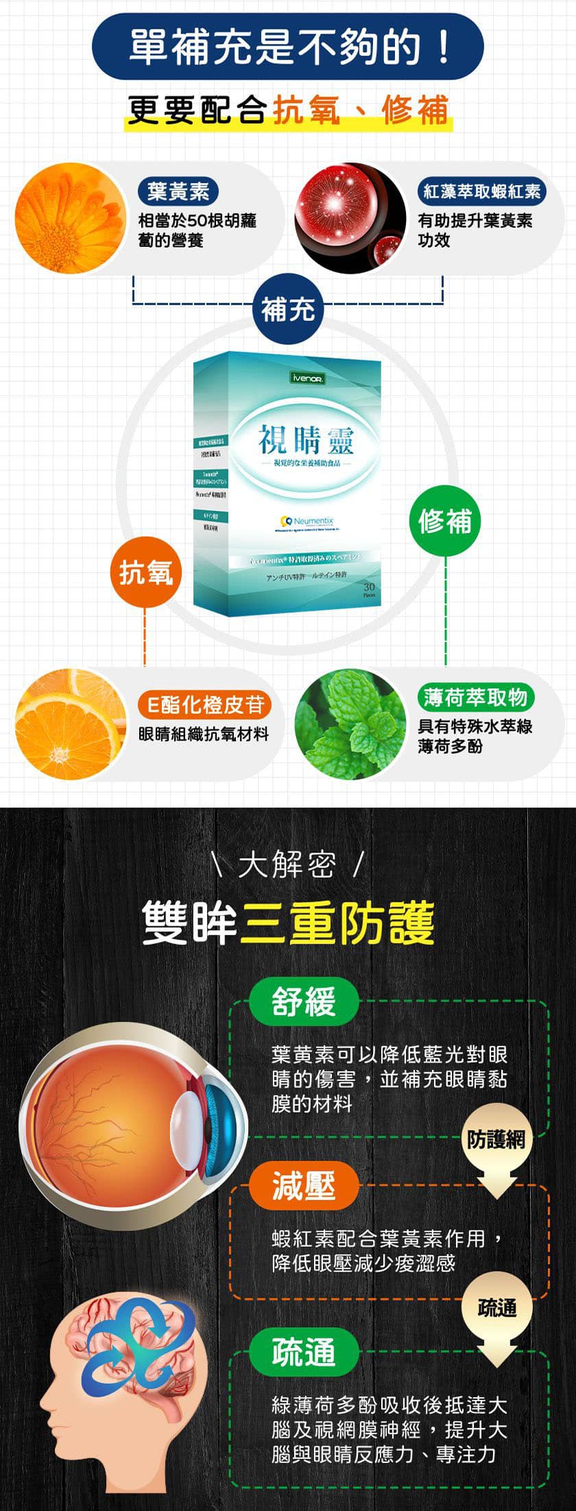 Lutein: Helps to reduce inflammation in your eyes, fight off free radicals, reduce oxidative stress, and boost the sharpness of your vision.