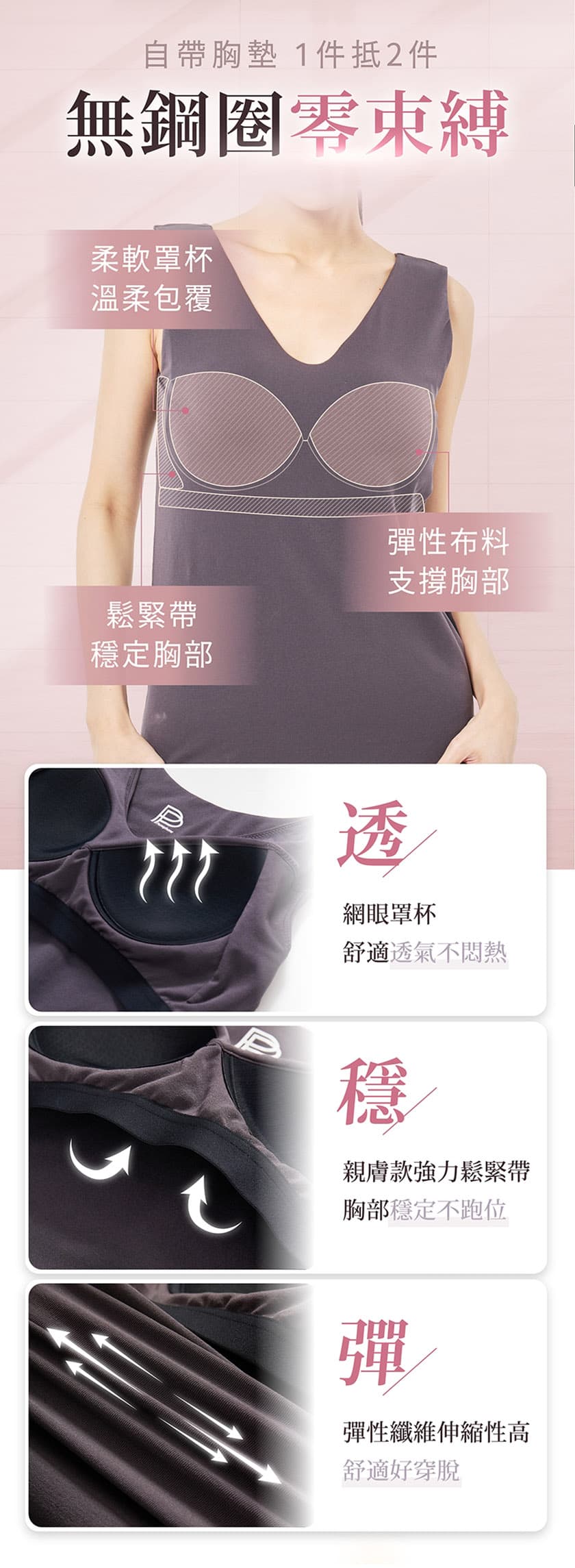 All-in-One Design: Built-in chest pads replace the need for a separate bra — zero steel wires, zero restriction.