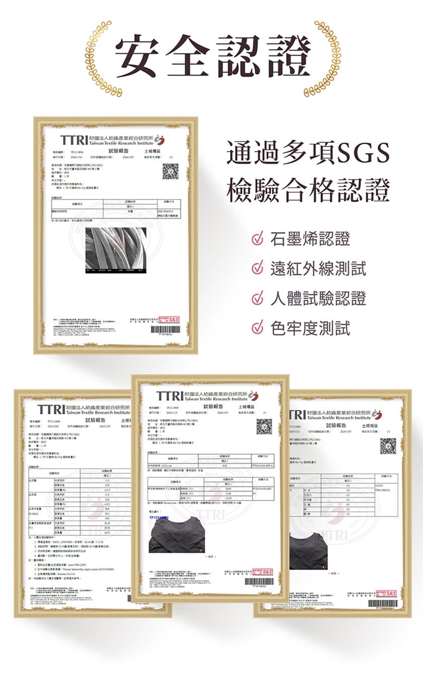 - Advanced Features: Graphene certification, far-infrared testing, human trial approval, colorfastness certified