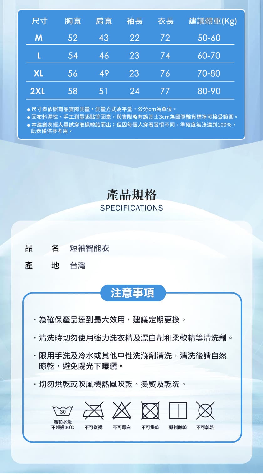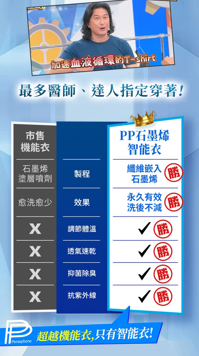 Tops PP Graphene Medical Grade Intelli Tee PP石墨烯短袖智能衣 Categories Tops Undergarments Leggings Health & Wellness Supplements Bedding Hamburger Toggle Menu Medical Grade, Wellness apparelFar infrared rays penetrating to tissue depths of 12cmDesigned with a highly absorbent and breathable materialQuick drying, wick absorption characteristic. Keeps you cool and dry during sweaty workouts.✅ Improves blood circulation and detoxification✅ Anti-odor✅ Anti-UV Rays✅ Anti-BacterialMaterial:100% Polyester Fibre (contains graphene)Size: M/L/XL/2XLLaundry Care:Hand wash, dry in the shadeDo not iron / do not bleachDo not tumble dry / do not dry clean