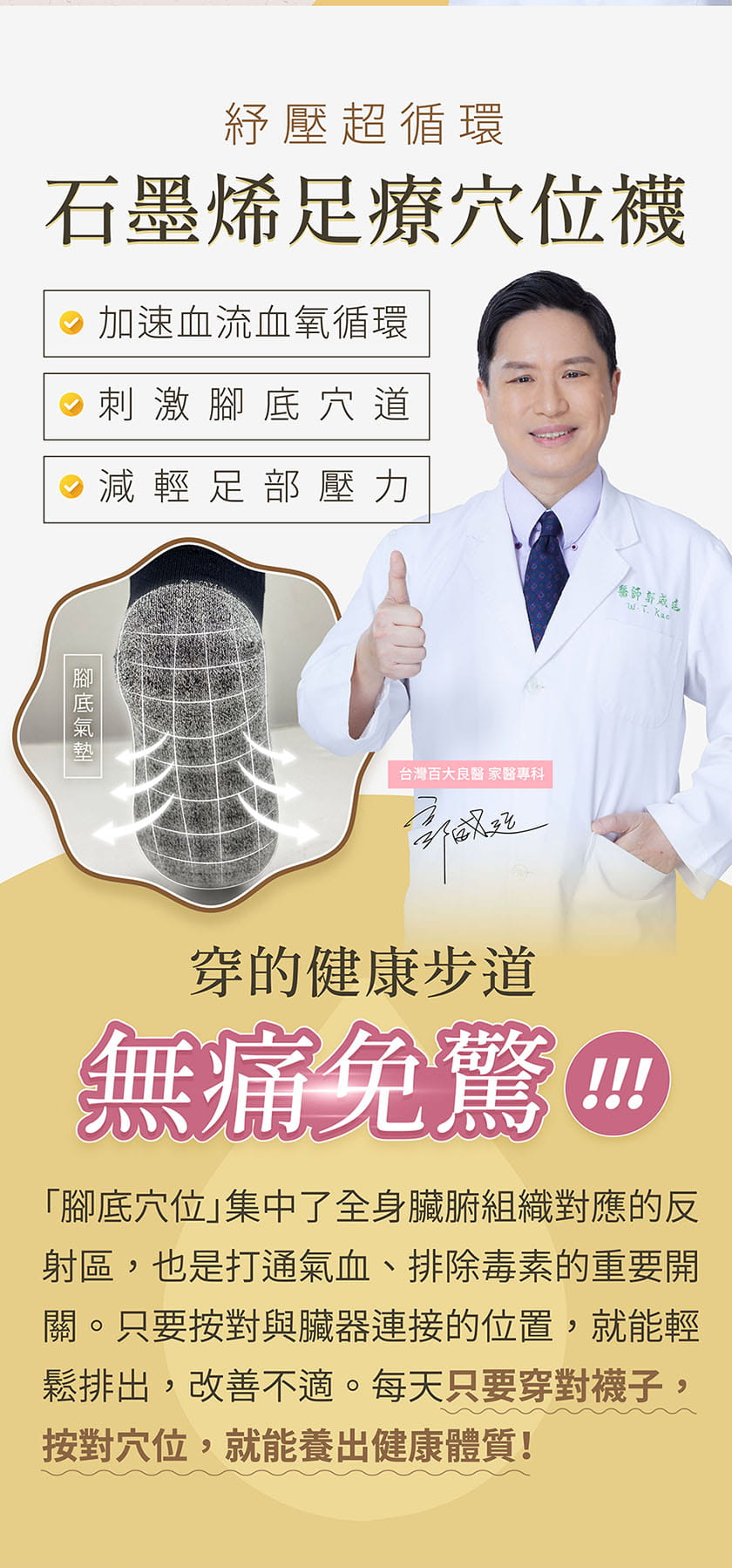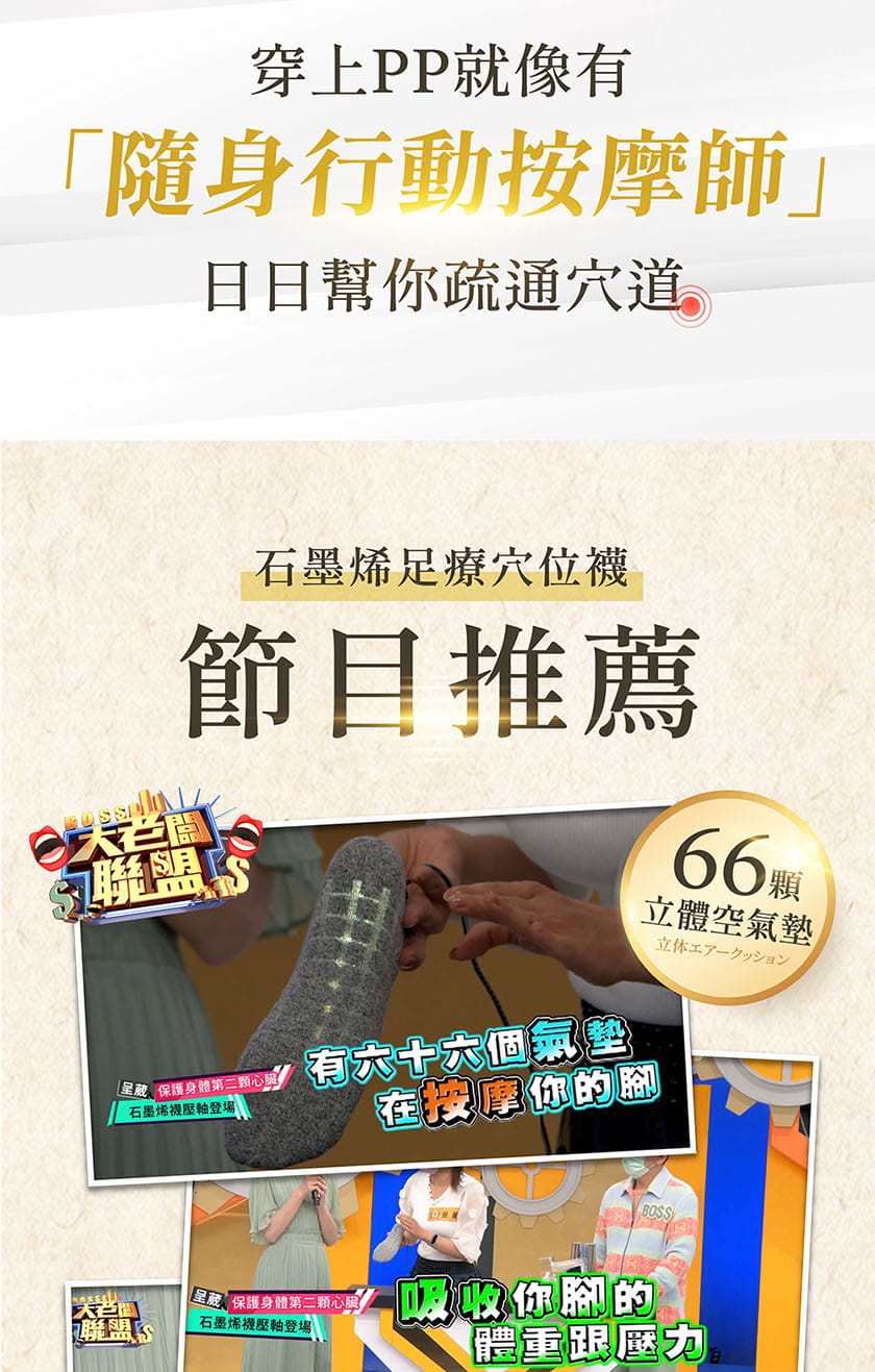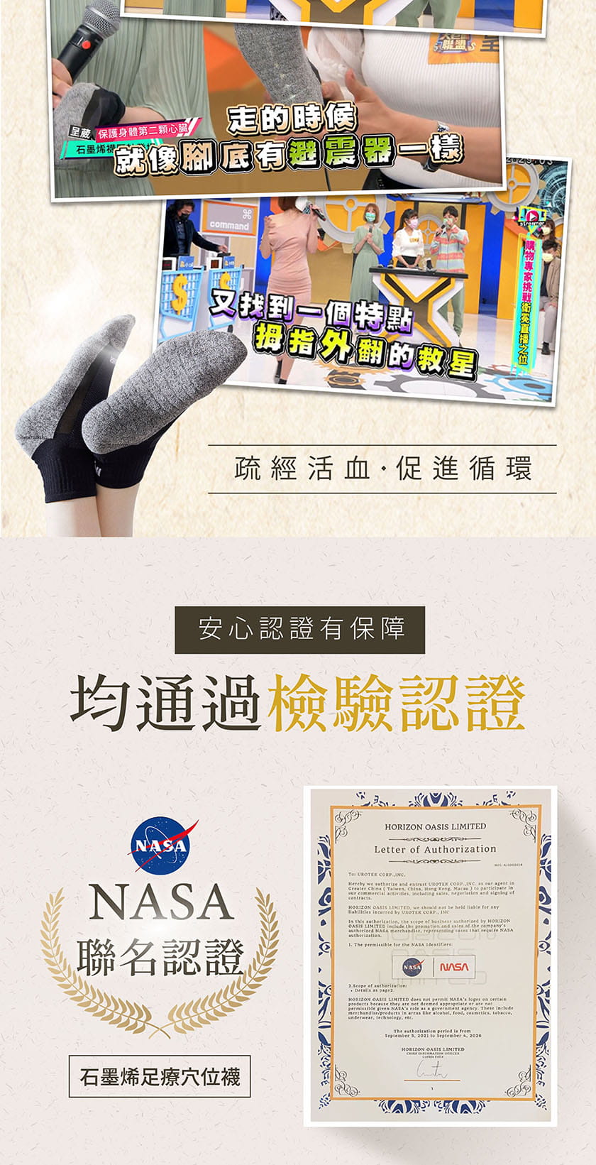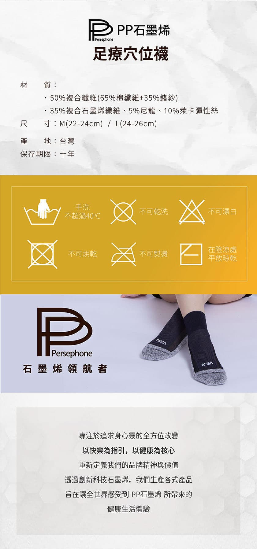 Health & Wellness PP Medical Superconductor Graphene Socks PP石墨烯超导袜 Categories Tops Undergarments Leggings Health & Wellness Supplements Bedding Hamburger Toggle Menu PP X NASA collaboration development66 air cushions, experience weightless like an astronaut in space✅ Elastic weave – anti-slip design✅ Compression – Reduce Water Retention✅ Air-guiding mesh – Ventilating breathable material✅ Padded with extra-thickness, shock absorption– Promotes blood circulation– Stimulate the acupuncture points on the soles of the feet– Moisture-Wicking– Antibacterial and sweat-absorbentMaterial:50% Composite Fibers (65% Cotton Fiber + 35% Germanium Yarn),35% Composite Graphene Fibers, 5% Nylon, 10% Lycra Elastic YarnSize: Free M (22-24cm) / L (24-26cm)Note:Recommend periodic replacement to ensure maximum effectivenessof the product.Laundry Care:Hand Wash below 40°, Dry in shade , Do not iron, Do not bleach, Do not tumble dry, Do not dry clean.