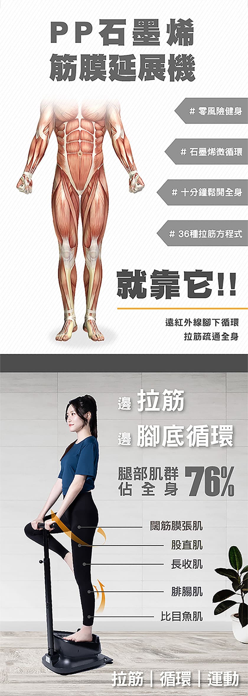 Health & Wellness StretchMasterPP石墨烯筋膜延展机 Categories Tops Undergarments Leggings Health & Wellness Supplements Bedding Hamburger Toggle Menu 10-Minute daily stretch is all you need to achieve long-term health and wellness.✅ 3-in-1 function✅ Break down fascial adhesions✅ Relieve stiff and sore muscles✅ Graphene foot pads, provide far infrared rays to promote blood circulation